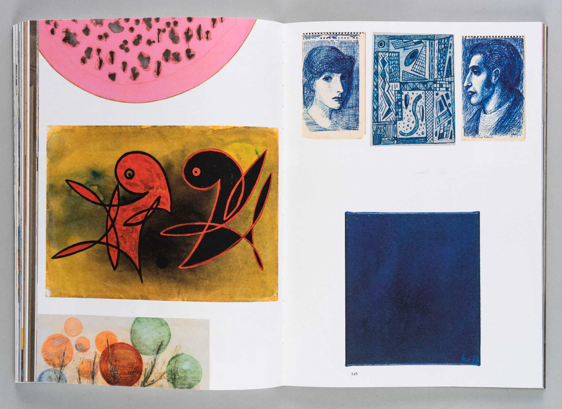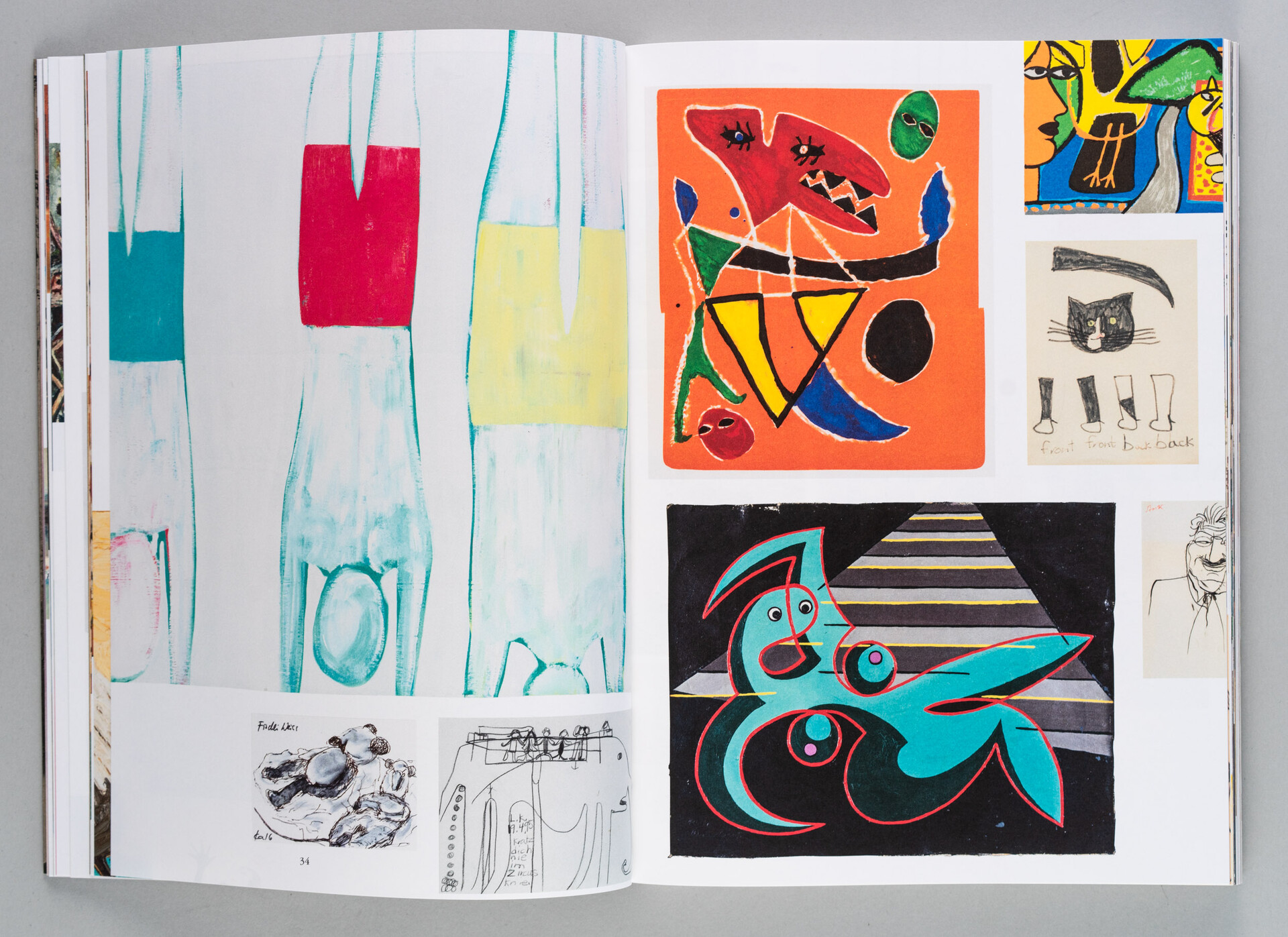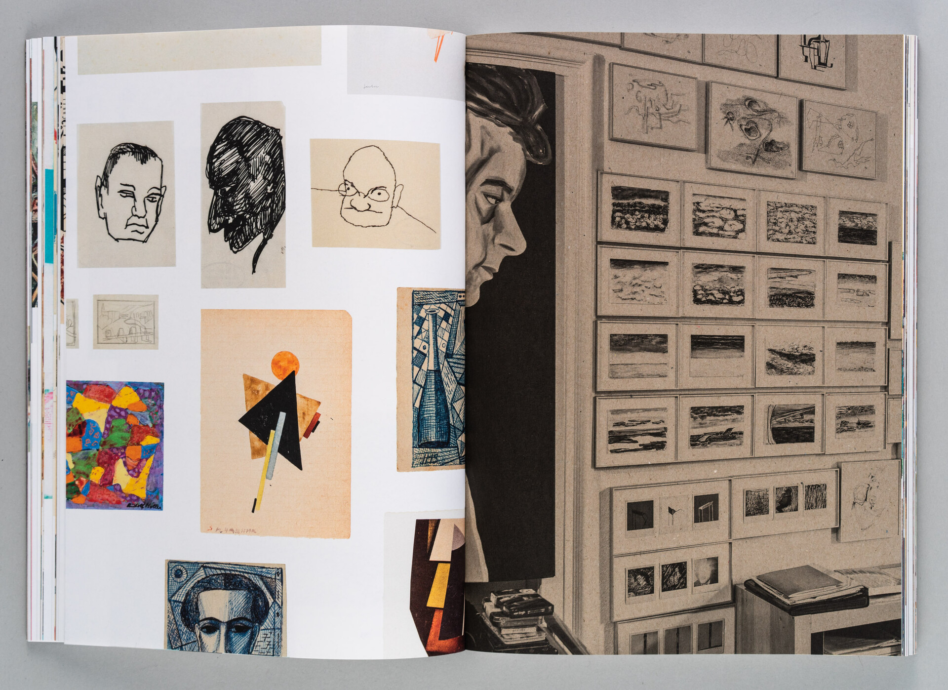 Grosse Teile meiner Sammlung und viele meiner eigenen Werke hängen in immer wieder wechselnden Bildordnungen an den vielen Wänden, die mir zur Verfügung stehen. Ohne Systematik und ohne uns vertraute Ordnungskriterien eröffnet sich vielleicht ein vorurteilsfreierer Blick auf Werke und Künstler:innen. Und diesen Blick transportieren auch die Bildordnungen in diesem Buch. In wechselnden, intuitiven Zusammenstellungen sprengen sie den Vollständigkeits- und Kategorisierungszwang herkömmlicher Sammlungstätigkeit.